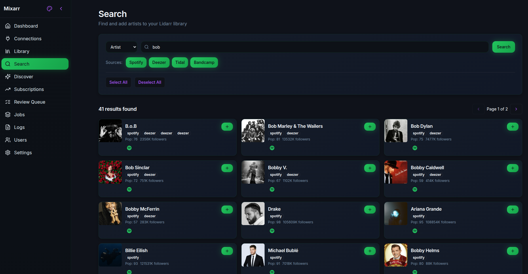 I’m new here! I wanted to share a music search and discovery tool for Lidarr. It plugs into Spotify, TIDAL, Deezer, Last.fm, MusicBrainz, Plex/Tautulli, Jellyfin, and even some AI recommendations.
