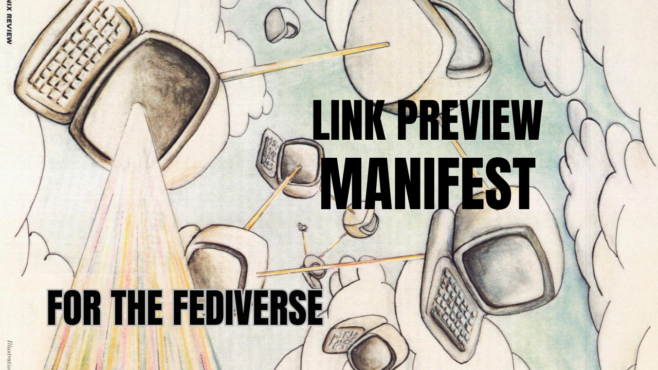 Other commenters pondered about some minimal way to replicate this elsewhere, and it seemed to be worth investigation. Read on as I propose an enhancement to the Fediverse (and maybe even web standards) to make Link Previews great: the Link Preview Manifest.